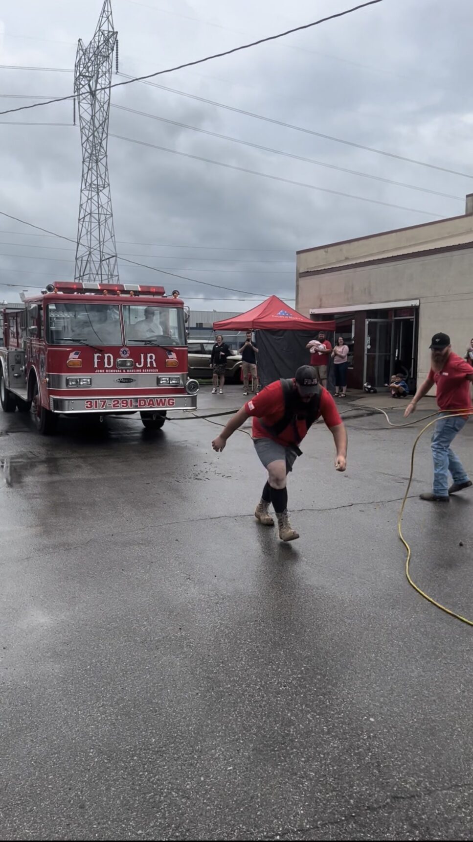 Following his yoke walk, Alex Seitz turned it up a notch by pulling our full-sized fire engine across our facilities parking lot! The emptied Pierce fire truck weighed about 14,500 pounds! Alex pulled 80 feet in one go! Click here to view the video of his amazing pull!