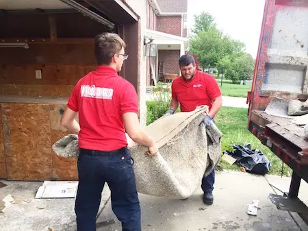 We start every carpet removal service by sending our certified, screened, and well-trained crew members equipped with a 16 cubic yard mini dump truck. Our trucks packed to the brim with tools and equipment to adapt to anything your carpet removal might throw at them! Following our teams arrival, our crew chief will inspect the property and note any irregularities with the job. Then, our crew chief will give you your final estimate before beginning your service. Helping you feel confident in you decision to hire Fire Dawgs!