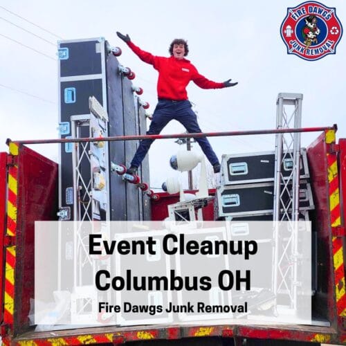 See our pricing page to learn more about the breakdown of our cost of service. Looking to save some dough? Head on over to our junk removal deals and savings page for all the ways you can save. Save $20 instantly by using our online booking option! Are you a veteran, active military, nurse, teacher, firefighter, EMS, or police officer? You may be eligible for our community hero discount. Eager for Fire Dawgs to make your event cleanup a seamless project? Great! Read on to learn how to get a free, in-person estimate on your service/ But what other services can we help with in Columbus OH?