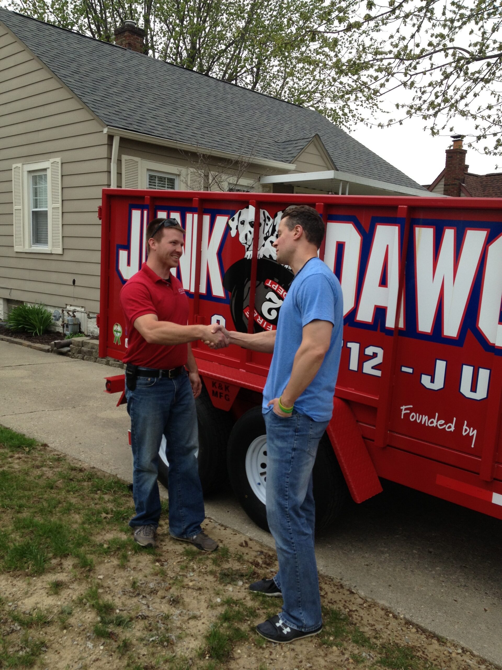 After you have learned about our service, you call 317-291-DAWG or email info@fire-dawgs.com and our helpful call center representative will answer any additional questions and/or schedule an appointment at your convenience. After having confirmed your appointment the day before or on the day of, we will arrive within your two hour time window on your scheduled date but not before performing a 20 minute call ahead to give you a more accurate arrival time within the two hour window. We will go over all the items needing removed, provide you with a firm, free no obligation quote and if you approve the price then we get to work right away. If you don’t approve of the price, then we shake hands and move on to our next appointment. Assuming we perform the work, we make it so that you don’t even know we were there except for the unwanted items that are no longer present. After finishing our work, we sweep up, square up on payment, leave you with some awesome magnets to hang pizza coupons on and go on our way.
