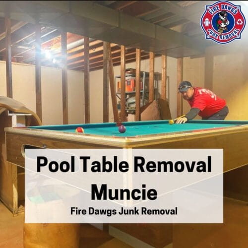 Looking for assistance with getting rid of your pool table? Need a team of professional junk haulers to handle all the moving, loading, hauling, and disposal of your table? Then look no further than our Dawg Tough team at Fire Dawgs Junk Removal! Our team of junk removal technicians will handle your pool table removal Muncie services. Our team can handle your pool table disposal in a fast and efficient service without you having to lift a finger. Additionally, if we’re able to donate your table, we’ll send you a tax-deductible receipt for your records. But how does our service work and what is the price? Read on for more information.