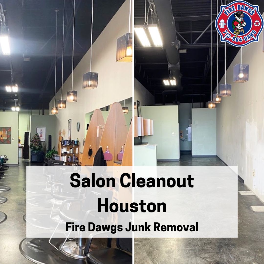 Salon Cleanout Houston by Fire Dawgs Junk Removal offers a professional, efficient, and eco-friendly solution for salon owners and managers looking to declutter and refresh their spaces. Whether you’re renovating, relocating, or simply in need of a deep clean, our team is equipped to handle everything from old furniture and equipment to unwanted products and debris. We take pride in providing exceptional service with a commitment to recycling and donating items whenever possible, ensuring your salon cleanout is not only seamless but also environmentally responsible. Let us help you transform your salon into a pristine, welcoming environment that reflects the best of your business. But what does our service look like?